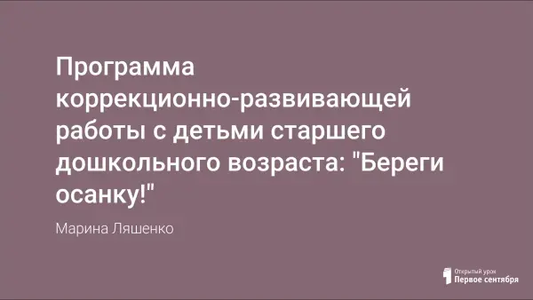 Программа поможет педагогам дошкольных учреждений организовать работу с детьми старшего дошкольного возраста по коррекции осанки; будет содействовать закреплению навыков осанки в различных условиях деятельности при выполнении общеразвивающих упражнений, а также упражнений прикладного характера (ходьба, бег, лазание, прыжки, висы и упоры).