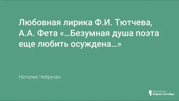 Открытый урок - знакомство с любовной лирикой Ф.И.Тютчева и А.А.Фета с целью показать своеобразие каждого автора, углубить представления о соотношении лирического героя и автора, образа и прототипа.