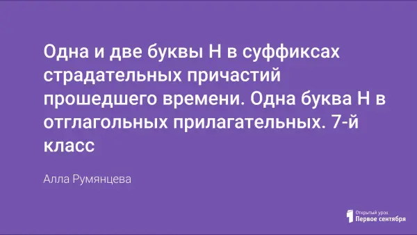 Урок русского языка в 7-м классе знакомит учащихся с одной и двумя буквами Н в суффиксах причастий и отглагольных прилагательных. Ребята учатся отличать причастия от отглагольных прилагательных, устно рассуждать и письменно объяснять условия выбора одной и двух букв Н в суффиксах этих частей речи.