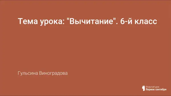 Цель урока: сформировать умение выполнять вычитать с помощью сложения числа, противоположного вычитаемому. На подготовительном этапе сопровождается презентацией.