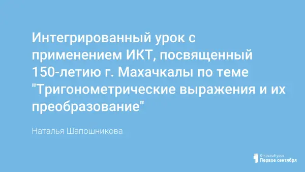 Целью урока являются повторение и закрепление основных понятий и формул тригонометрии и событий, связанных с историей города. Чтобы стимулировать интерес учащихся, на уроке используется принцип "яркого пятна".