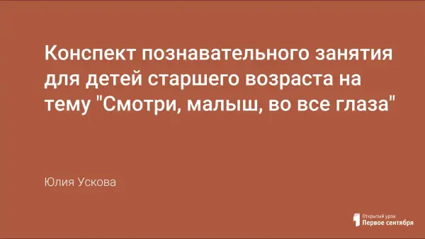 Занятие из цикла "Познай себя" поможет детям узнать о глазах как органе зрения. В ходе занятия дошкольники узнают об элементарном строении глаза, охране зрения, разучат комплекс упражнений для профилактики нарушения зрения.