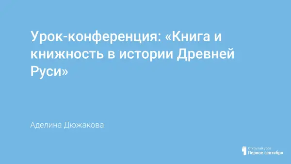 Урок-конференция знакомит учащихся с историей возникновения и развития письменности в Древней Руси, с историей происхождения алфавита, с технологией изготовления рукописных книг с жизнью первопечатника на Руси Ивана Фёдорова, с шедеврами древнерусской книжности. Формирует представления о роли возникновения славянской азбуки, появления письменности, древнерусской книги в духовной культуре Древней Руси.
