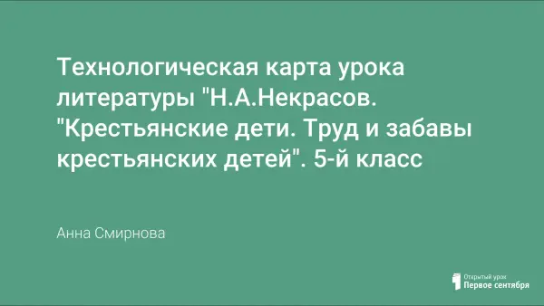 Цели урока: познакомить учащихся с особенностями художественного мира стихотворения «Крестьянские дети», раскрыть нравственный смысл произведения; формировать навыки выразительного чтения с соблюдением логического ударения и анализа поэтического текста; воспитывать чувство сопричастности к историческому прошлому своей страны.