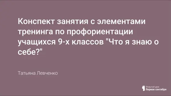 Занятие с элементами тренинга по профориентации учащихся 9-х классов. В качестве основной методики используется проективное рисование – автопортрет. Данная техника может быть применена в рамках социально-психологического тренинга и тренинга личностного роста и самоопределения с учащимися средней и старшей школы.