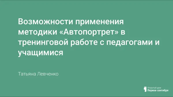 Описаны методика «Автопортрет» и формы работы с педагогами и учащимися. Тренинговые возможности необходимы в профилактике асоциального поведения, для профессионального и личностного самоопределения учащихся. В работе с педагогами методика может быть применена для предотвращения эмоционального и профессионального выгорания, актуализации ресурсов личностного и профессионального развития.