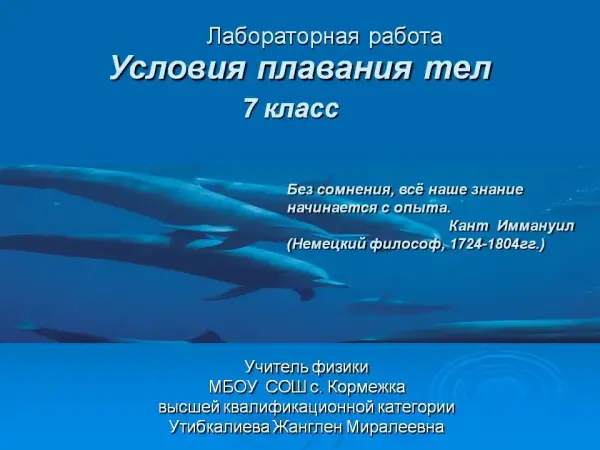 Урок-исследование условий плавания тел в жидкостях применяет дифференцированный подход к учащимся, исследовательские задания, занимательные опыты. Урок вышел за рамки стандарта, насыщен дифференцированными и индивидуальными заданиями. Презентация содержит формулы, видеофрагменты, анимации.