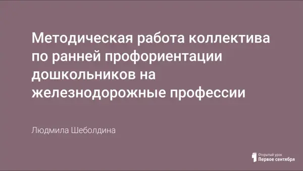 Представляю фрагмент организационно-методической работы коллектива по ранней профориентации дошкольников на железнодорожные профессии, в которую вошли: перспективное планирование работы по закреплению знаний о железной дороге у детей разных возрастных групп, методическая работа с кадрами по проблеме "Формирование представлений о значимости труда железнодорожника", педсовет "Железная дорога - детям не игрушка".