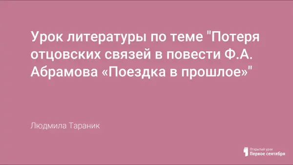 Цель урока – ознакомить учащихся с особенностями повести Ф.А. Абрамова. Формировать умение и навыки самостоятельного исследования текста с целью поиска необходимой информации; выявить авторскую позицию; развивать речь детей, мышление, чувство слова, языка.