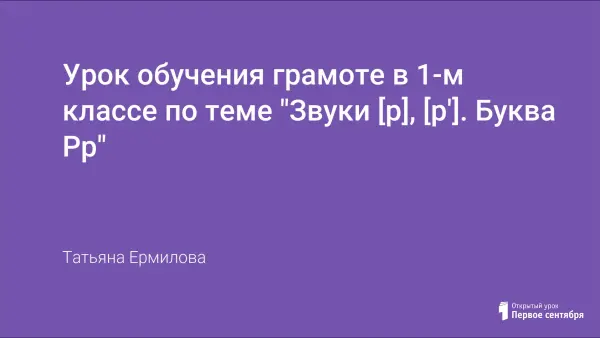 Урок знакомит с буквой Р, р. Учащиеся читают слоги, слова с буквой «р»; находят схожие по звучанию слоги и слова, выделяют рифмующие слова в стихотворении, перекодируют звуковую форму слов из условно-графической в буквенную и наоборот.