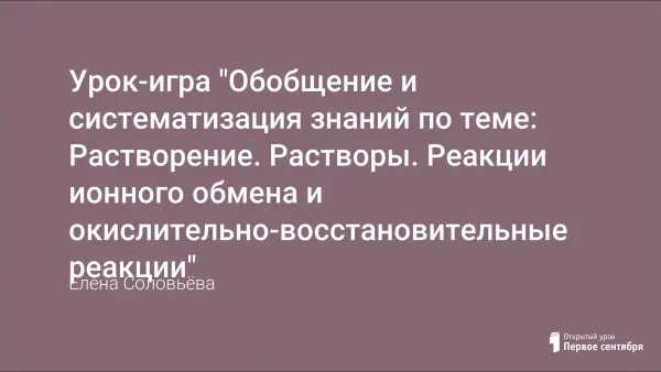 Урок химии проходит в форме игры. Играя, учащиеся повторяют, обобщают и систематизируют учебный материал по теме "Растворение, растворы, реакции ионного обмена и окислительно-восстановительные реакции".
