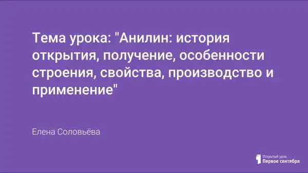 Интегрированный урок с привлечением специалистов из различных областей знаний профориентирует учащихся. Урок знакомит с историей открытия анилина, получением, особенностями строения, свойствами, производством и применением. Для более полной наглядности урок сопровождается презентацией.