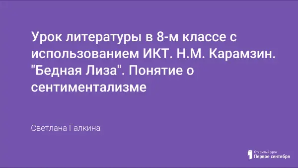 На уроке дети знакомятся с биографией и творчеством Н.М. Карамзина, получают представление о сентиментализме как литературном направлении. В качестве наглядного материала используется презентация, выполненная в программе Microsoft PowerPoint. Обращение к компьютерной технологии на данном уроке способствует развитию интереса к литературе сентиментализма и критического мышления учащихся, интеграции знаний из разных областей, воздействию на чувства школьников.