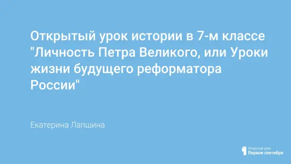 Урок проходит в форме плавания на паруснике по волнам, которые являются цитатами, относящимися к разным периодам жизни ПетраI; использованы стихи А.С. Пушкина. Дети дома готовят сообщения, характеризующие разные периоды жизни царя. На уроке школьники заполняют "схему-крепость", вписывают в нее события, на их взгляд повлиявшие на личность Петра I и на характер его реформ в будущем.