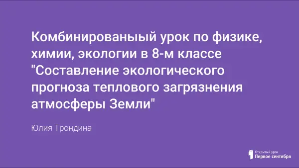 Урок проходит в форме составления экологического прогноза теплового загрязнения атмосферы Земли за одни сутки в результате сгорания нефтепродуктов. Такая необычная форма урока позволяет создать мотивацию к изучению данного материала, формирует представление о единой научной картине мира, показывает роль наук в решении повседневных проблем человека.