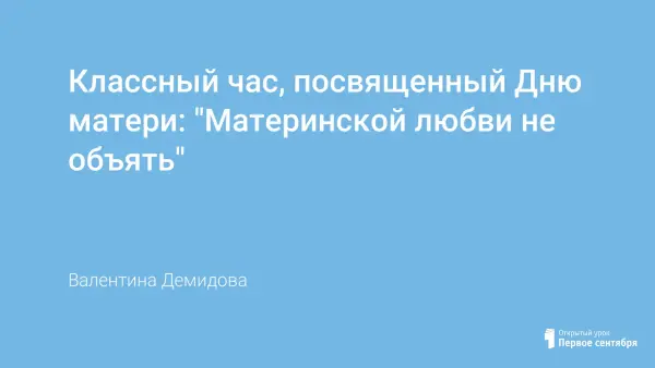 В работе представлен классный час, посвященный Дню матери. Материал включает в себя литературно-музыкальную композицию и презентацию, которые содействуют воспитанию у молодежи лучших духовно-нравственных качеств: почтительное отношение и чувство родства к самым близким людям - матерям, в чьих руках будущее России.
