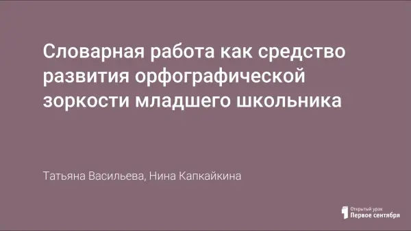Словарная работа как средство развития орфографической зоркости младшего школьника