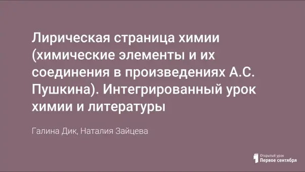 Лирическая страница химии (химические элементы и их соединения в произведениях А.С. Пушкина). Интегрированный урок химии и литературы
