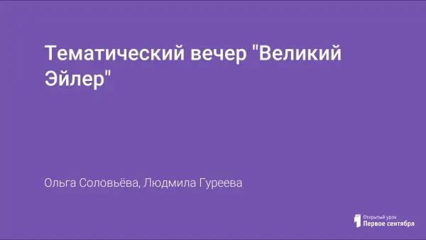 Тематический вечер "Великий Эйлер" - это внеклассное интегрированное занятие, которое проводится со студентами II курса. Вечер посвящается 300-летию со дня рождения великого немецкого математика Леонарда Эйлера.
