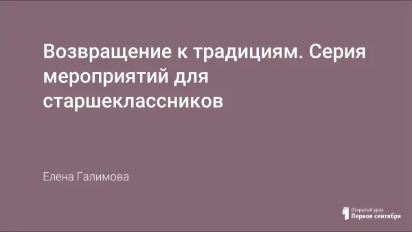 Данная статья предлагает к рассмотрению вопрос о проведении традиционных мероприятий для старшеклассников. В настоящее время довольно трудно заинтересовать и привлечь учащихся 9–11-х классов к активной внутришкольной деятельности. Дети в гораздо большей степени поглощены учебой.