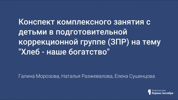 Конспект комплексного занятия с детьми в подготовительной коррекционной группе (ЗПР) на тему "Хлеб - наше богатство"