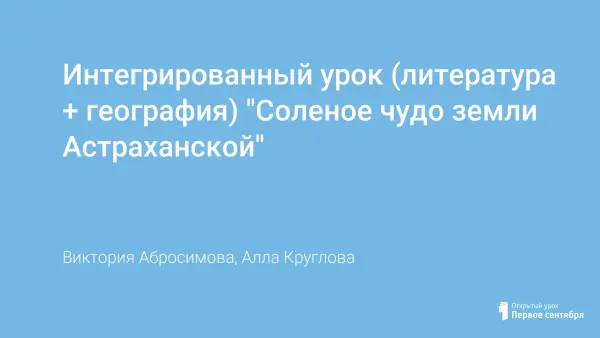 Интегрированный урок (литература + география) "Соленое чудо земли Астраханской"