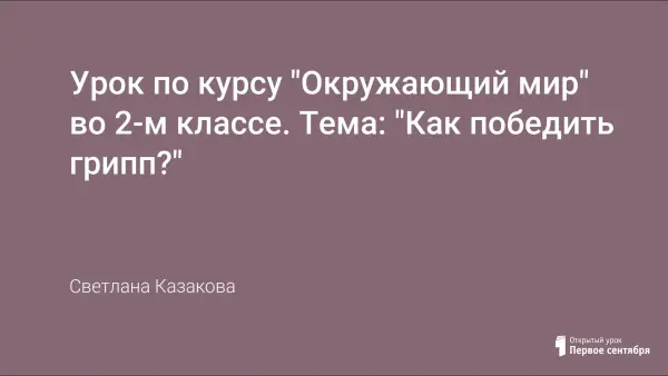 Урок знакомит ребят с опасным вирусным заболеванием гриппом. В увлекательной форме ребята получают представление о возбудителе гриппа, о путях заражения, симптомах данного заболевания. На уроке ученики узнают новые слова: «эпидемия», «токсины», «профилактика», «фитонциды».