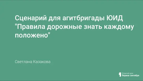 Сценарий позволит в увлекательной форме напомнить ребятам о правилах дорожного движения. Участники агитбригады рассказывают о правилах для велосипедистов, пешеходов, вспоминают о видах светофоров и знаках дорожного движения.