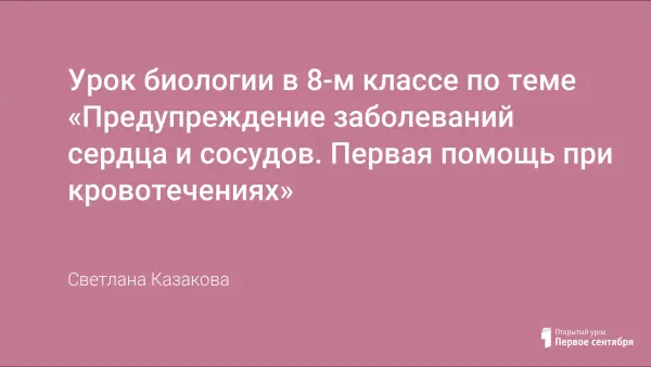 Цель урока: ознакомить обучающихся с основными заболеваниями сердечно-сосудистой системы и с правилами профилактики данных заболеваний; сформировать представление о разных видах кровотечений, научить оказывать первую помощь при повреждении сосудов.