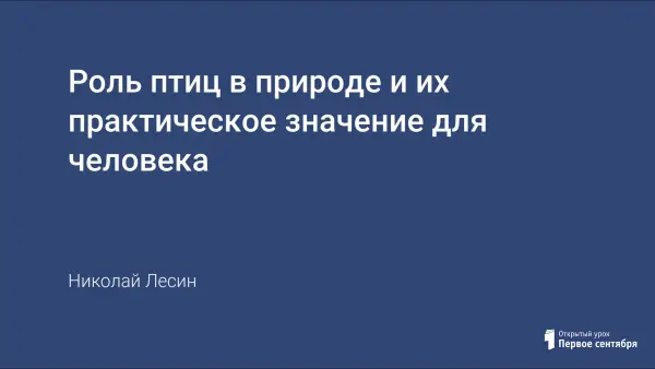 Все группы животных интересны. Но чаще всего интерес у учащихся вызывают птицы. Они привлекают причудливым оперением, пением, движениями, полетом и, конечно, загадочным образом жизни. Нужно всегда помнить, что птицы – наши лучшие друзья, защитники урожая, защитники зеленых насаждений — наше богатство. По программе В.В. Пасечника данный урок можно проводить в 7-м классе как обобщающий в теме "Позвоночные. Класс птицы" или в теме "Животный мир и хозяйственная деятельность человека".