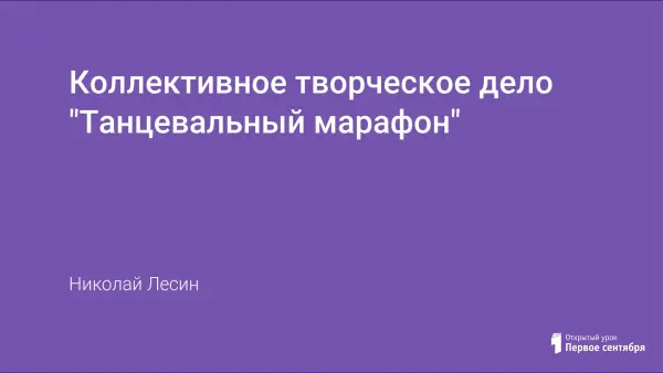 "Танцевальный марафон" - внеклассное воспитательное мероприятие, проводимое в форме коллективного творческого дела (КТД). КТД позволяет привлечь к подготовке и проведению мероприятия довольно большое количество участников. Данное мероприятие имеет не только развлекательную направленность, но и познавательную.