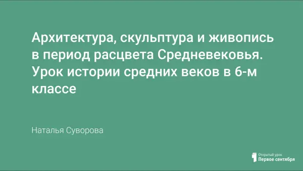 Урок истории средних веков в 6-м классе знакомит учащихся с расцветом архитектуры, скульптуры и живописи, рассматривая подробно два важнейших стиля средневекового искусства – романский и готический. Материал урока показывает тесную связь расцвета архитектуры и искусства с развитием религиозного чувства и усилением церкви.