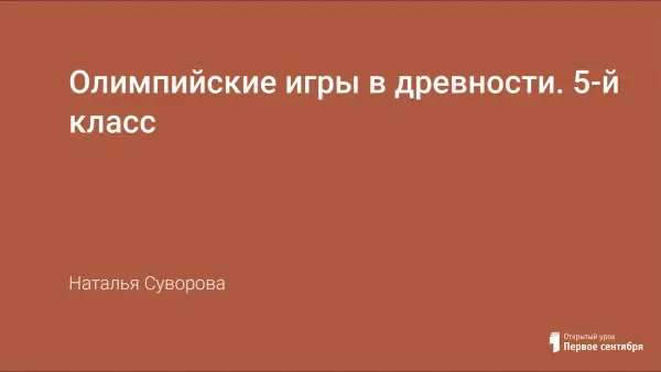 Урок истории в 5-м классе призван воспитывать чувства прекрасного, стремление к физическому совершенству, пробуждать интерес к занятиям спортом, популяризовать здоровый образ жизни. На уроке используется карта-конспект, позволяя учащимся выбирать необходимый материал самостоятельно. А презентация поможет сделать урок зрелищным.