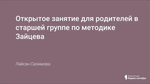 Целью этого занятия является не только закрепление и систематизация знаний пройденного материала, но и ознакомление родителей с методикой, методическим материалом и результатом нескольких занятий.