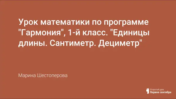 Урок математики решает следующие задачи: знакомит с единицами длины — сантиметр, дециметр: старинными единицами длины — дюйм, пядь, косая сажень, маховая сажень, локоть; учит измерять отрезки, используя современные единицы длины - сантиметр, дециметр; пользоваться линейкой, осмыслить необходимость мер длины в жизни человека.