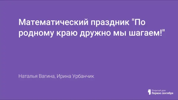 Математический праздник «По родному краю дружно мы шагаем!» направлен на активизацию интереса первоклассников к изучению математики, развитие логического мышления, памяти, внимания, воспитание любви к родному городу, уважения к его жителям. Используются активные игровые формы математического обучения.