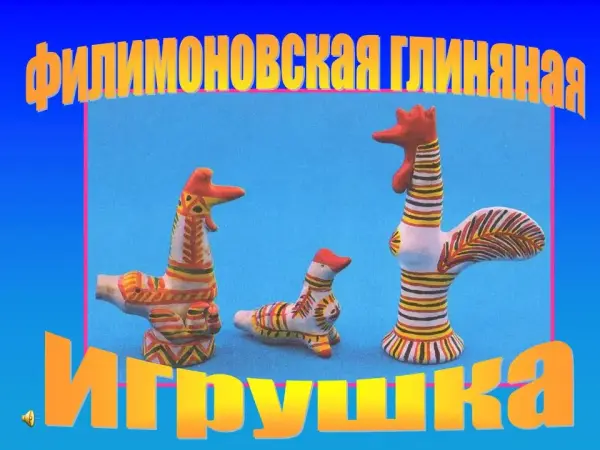 Работа служит знакомству с глиняными игрушечными промыслами, историей их происхождения, традициями, особенностями лепки и росписи. Благодаря подборке материала об истории, традициях сюжетной лепки, элементах росписи и цвета учащиеся узнают, как можно слепить и расписать глиняную игрушку. На уроке они, закрепляя полученные знания, расписывают глиняную форму в виде конического колокольчика, используя элементы росписи филимоновской игрушки.