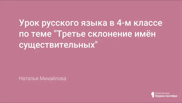 Урок развивает умение в различении и правописании имен существительных 1, 2, 3-го склонений; развивает орфографическую зоркость; воспитывает аккуратность.