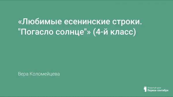 Урок вводит учащихся в мир поэзии С.А. Есенина, показывает значение литературных приемов в лирике поэта, развивает у учащихся поэтический вкус и образное мышление в процессе работы над стихотворениями «Погасло солнце», « С добрым утром!»; способствует эстетическому развитию учащихся.