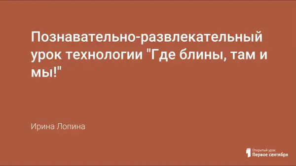 В доступной, интересной форме урок способствует обобщению, систематизации знаний по технологии приготовления блинов; совершенствованию умений в оформлении блюд, сервировке стола; расширению представлений о русской кухне; воспитанию уважения к обычаям предков, художественного вкуса, творчества, культуры труда. Познавательный материал можно использовать во внеклассных мероприятиях, посвященных Масленице.