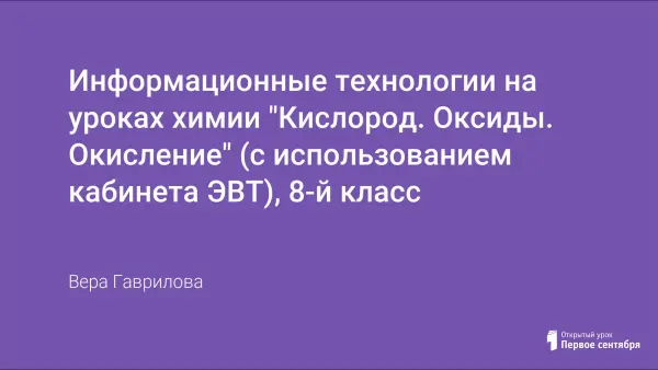 Урок химии в 8-м классе обобщает и систематизирует полученные знания о кислороде как о простом веществе, его соединениях (оксидах); устанавливает зависимость между составом, свойствами и применением веществ.