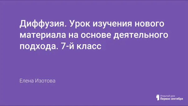 Урок изучения нового материала на основе деятельностного подхода в 7-м классе. Такой урок позволяет познакомить учащихся с методом исследований, составления плана самостоятельной работы, научить делать выводы на основании полученных результатов. На уроке ребятам предстоит познакомиться с явлением диффузии. Для этого будут проведены серии экспериментов, в ходе которых учащиеся выступят в качестве ученых-открывателей.