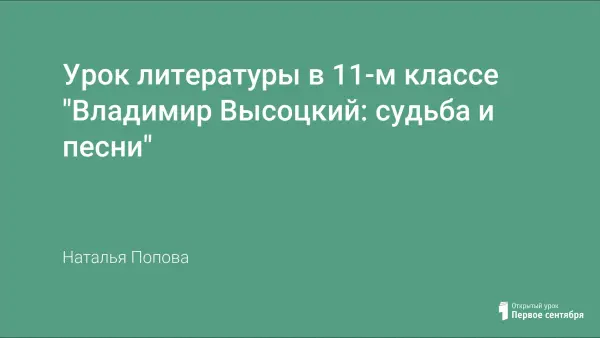 Урок знакомит с творчеством Владимира Высоцкого, показывает важнейшие составляющие художественного мира поэта, черты его индивидуальности, тематического разнообразия и эстетического единства его произведений; осмысление авторской концепции мира и человека.