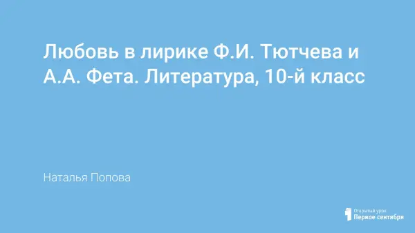 Урок литературы в 10-м классе – знакомство с гениальными поэтами XIX века Ф.И. Тютчевым и А.А. Фетом как авторами стихов о любви, с некоторыми эпизодами из личной жизни и отражением их в поэтических произведениях.