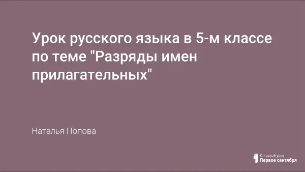 Урок знакомит учащихся с разрядами имен прилагательных, признаками каждого разряда, учит определять разряд прилагательного по нескольким классификационным признакам. На уроке используется презентация, которая дает возможность заинтересовать предметом учащихся.