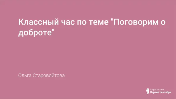 Классный час на развитие представление учащихся о доброте с целью воспитания стремления совершать добрые поступки, осмысления категории "доброта", развития самооценки.