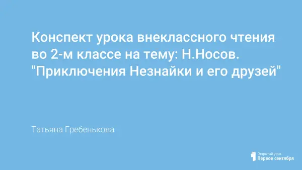 Конспект урока внеклассного чтения во 2-м классе на тему "Н.Носов. Приключения Незнайки и его друзей". Основная идея - это учить умению анализировать прочитанное, выделять главное, развивать речь, мышление детей, прививать интерес к чтению.
