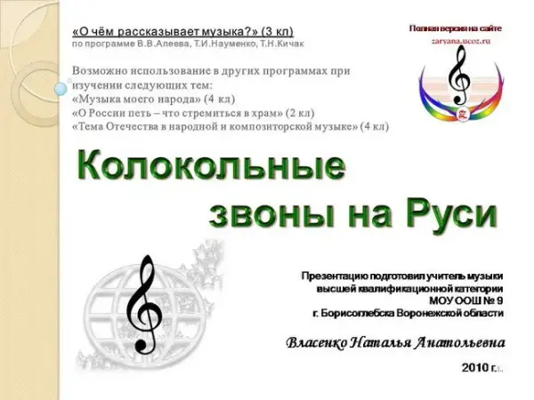 Интегрированный урок музыки с элементами исследовательской деятельности "Колокольные звоны на Руси"