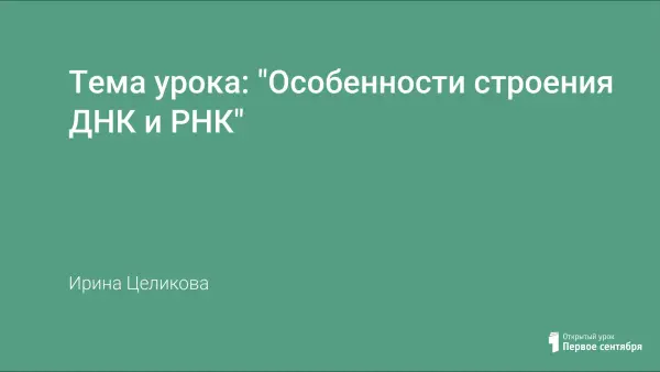 Урок основывается на личностно ориентированом и дифференцированном подходе к учащимся. Цели урока: сформировать знания о строении, свойствах, структуре молекул нуклеиновых кислот, о принципе комплементарности в ДНК; раскрыть роль нуклеиновых кислот в живой природе.