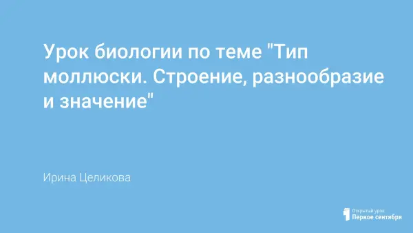 Цель урока: познакомить учащихся с представителями типа моллюски; отметить особенности классов брюхоногих, двустворчатых и головоногих, охарактеризовать их роль в природе и использование человеком; показать особенности приспособления моллюсков к разной среде обитания, значение в природе и жизни человека.